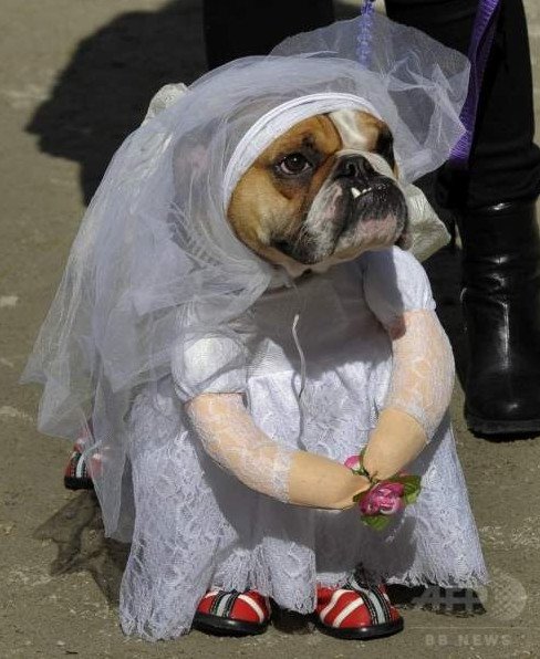 Собака в свадебном платье.