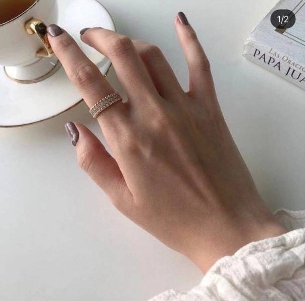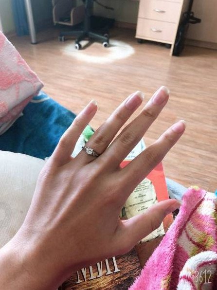 Маникюр с обручальным кольцом на пальце.