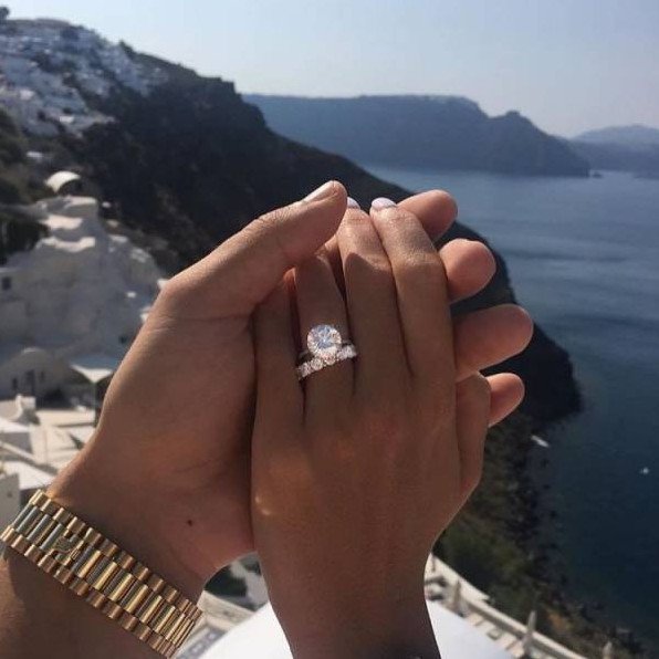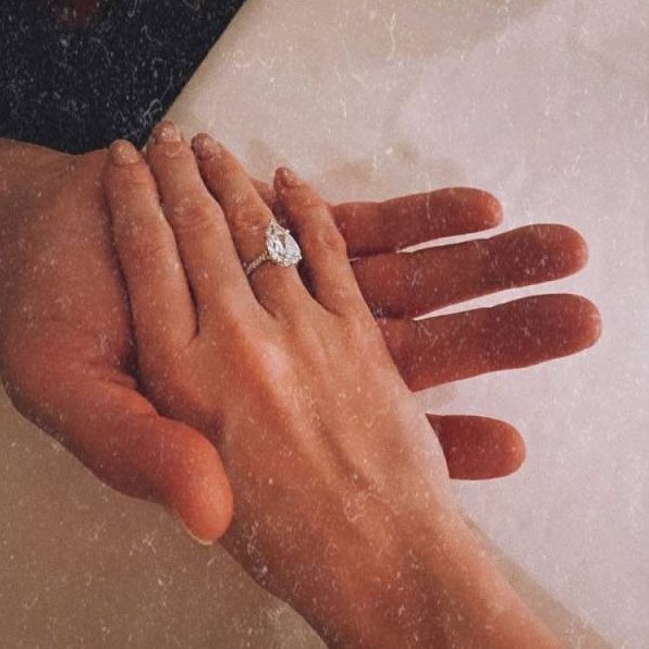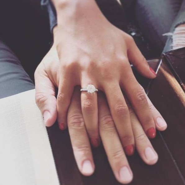 Кольцо с бриллиантом на руке.