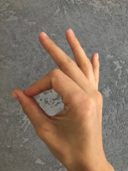 Рука с кольцом на безымянном пальце.