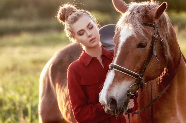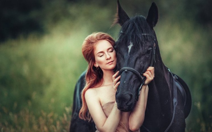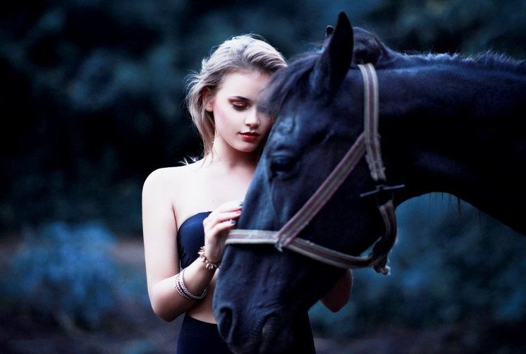 Красивая девушка и конь.