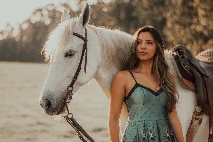 Красивая девушка с белым конем.