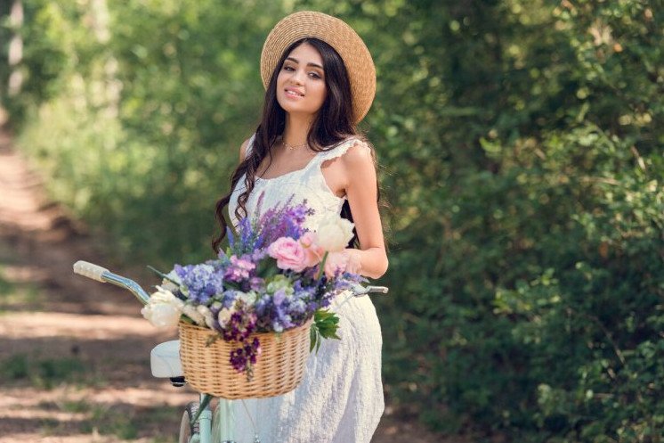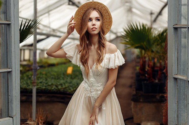 Девушка в шляпке в летнюю пору.