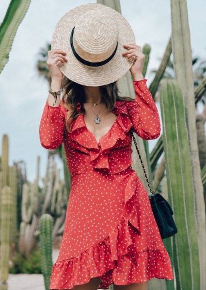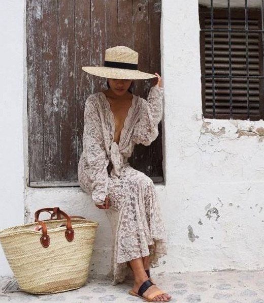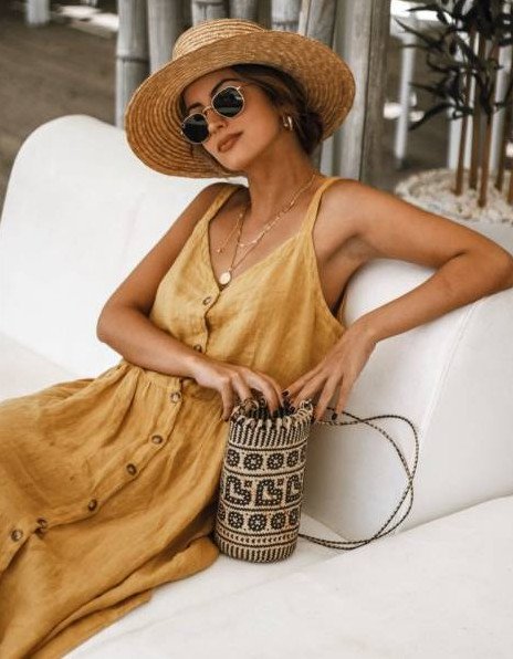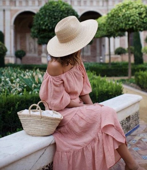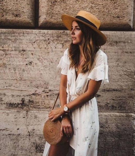 Прекрасное платье и шапка соломенная образ.
