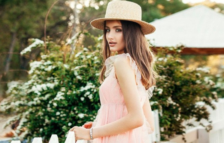Шапка канотье на симпотичной девушке.