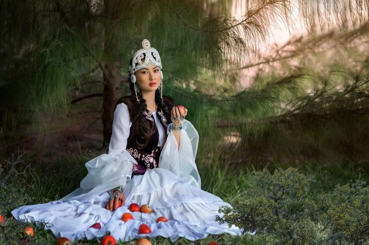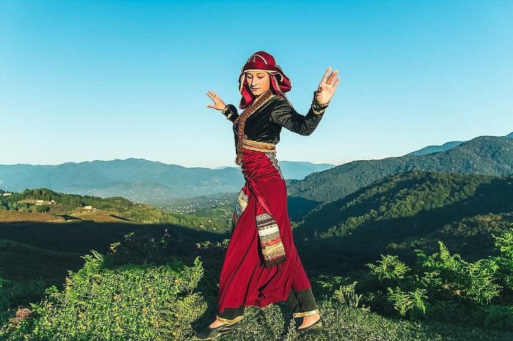Девушка в гос одежке в горах.