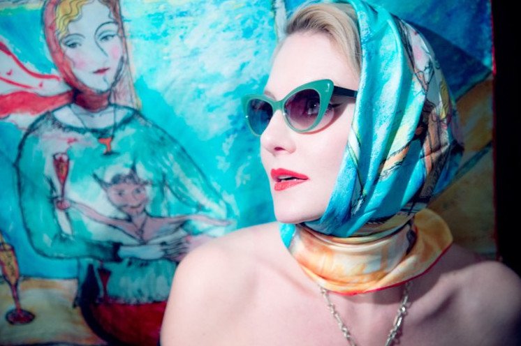 Девушка в тёмных очках и платке.