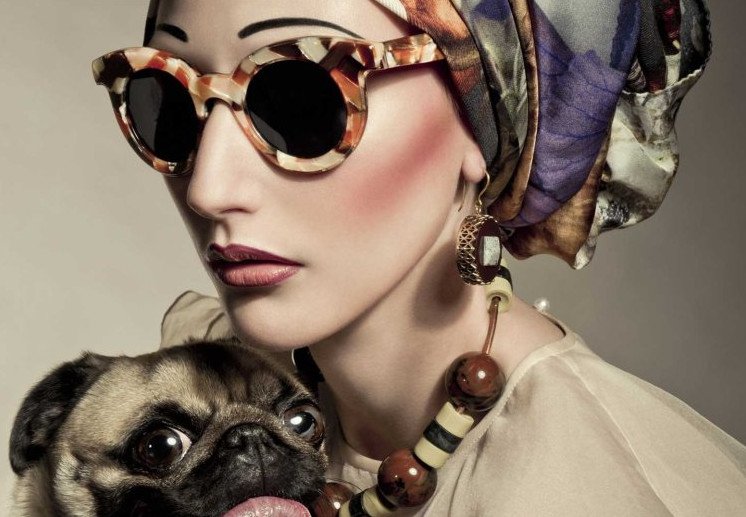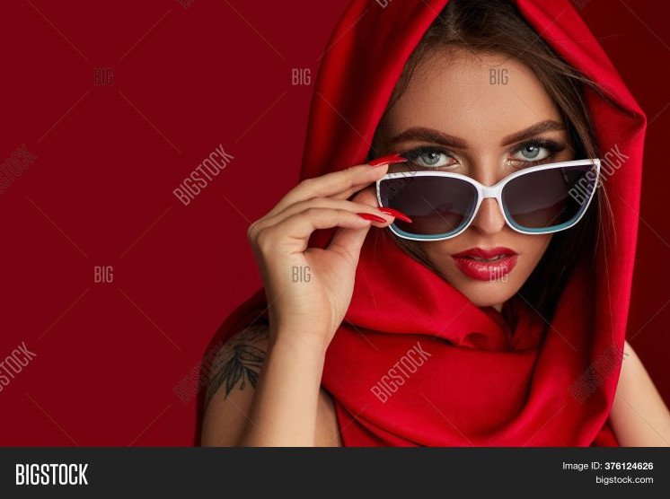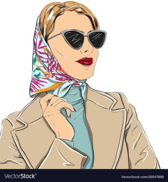 Прелестная прекрасная женщина в платке и очках.