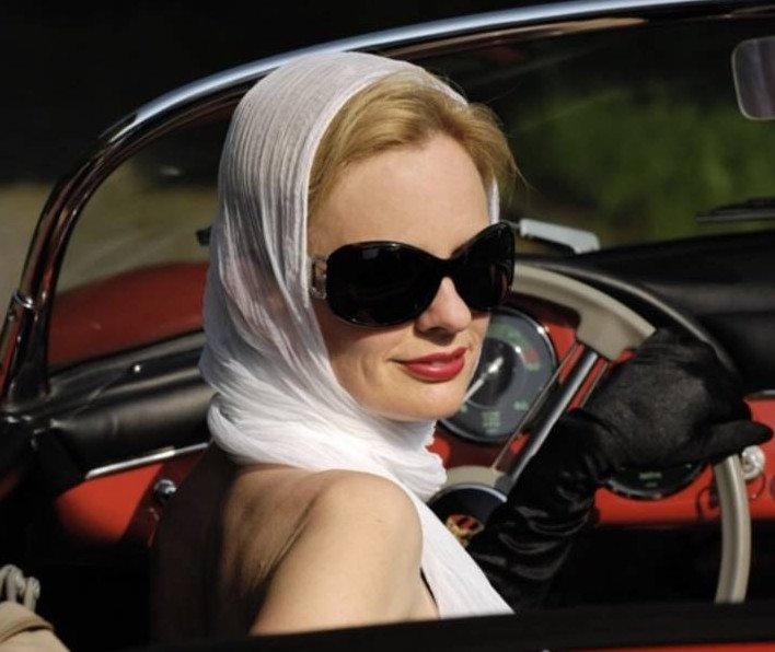 Грейс Келли в платке и очках.