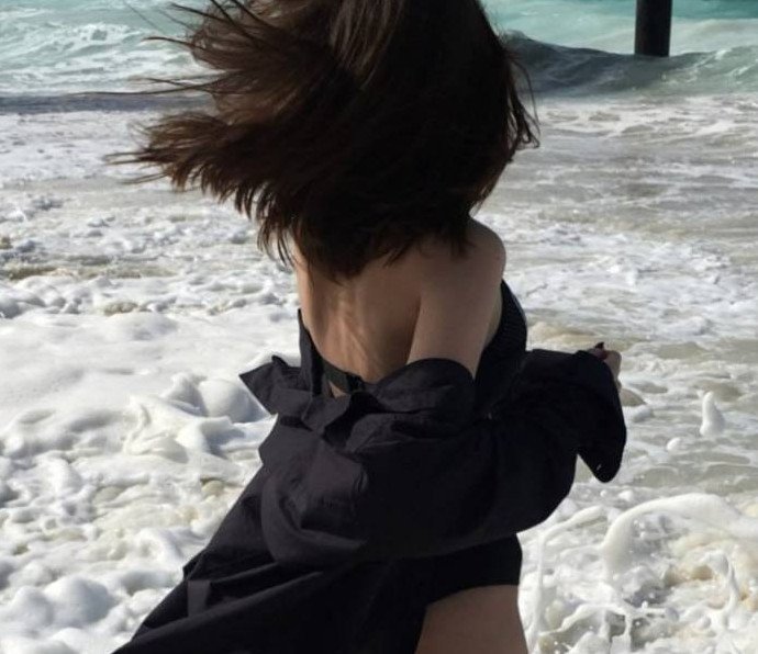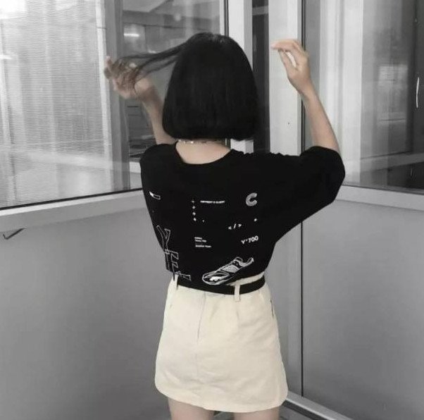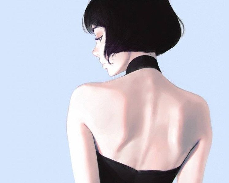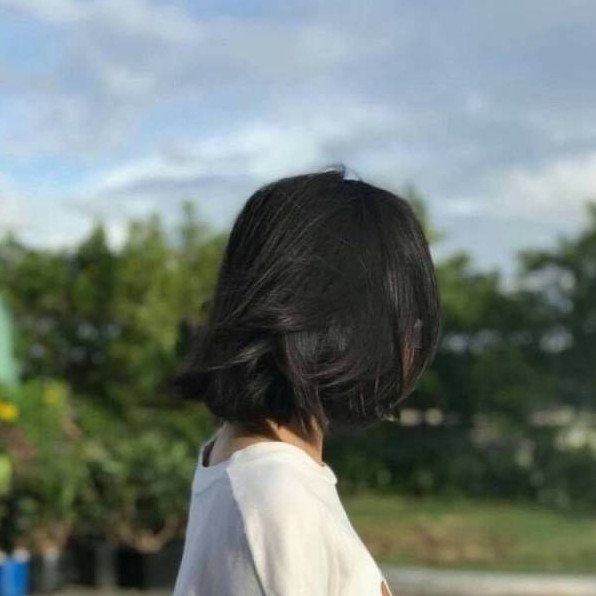 Девушка с чёрным каре без лица.