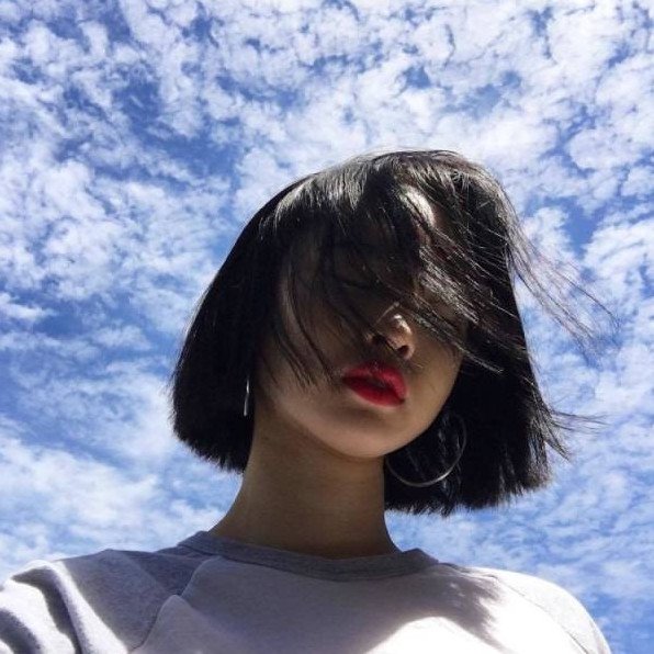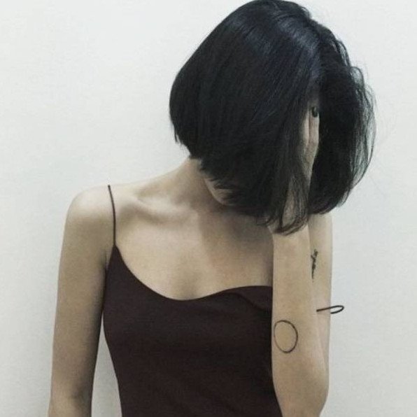 Девушка с черным каре без лица.