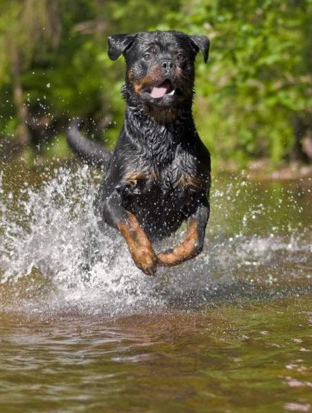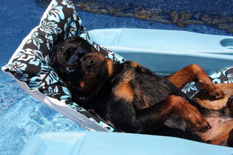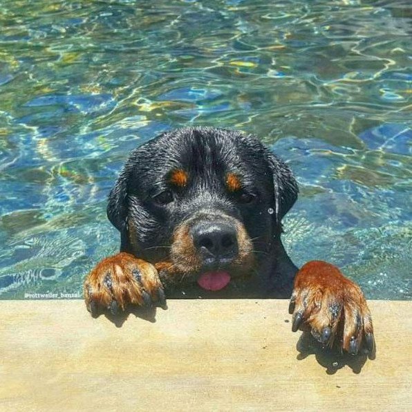 Ротвейлер в бассейне.