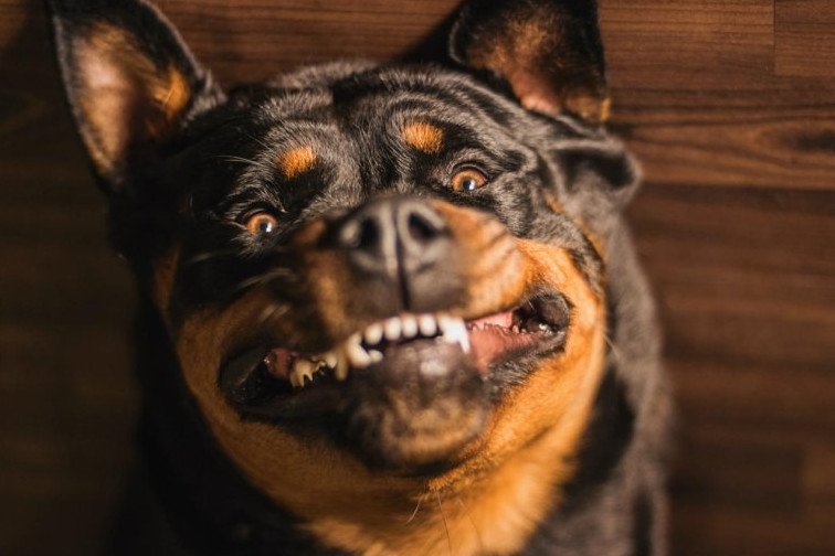 Собака ротвейлер оскал.