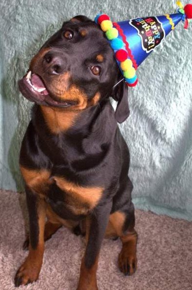 Веселый ротвейлер.