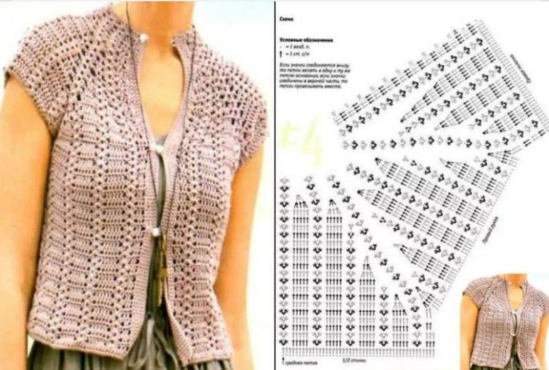 Ажурные жилеты крючком со схемами для красивых женщин.