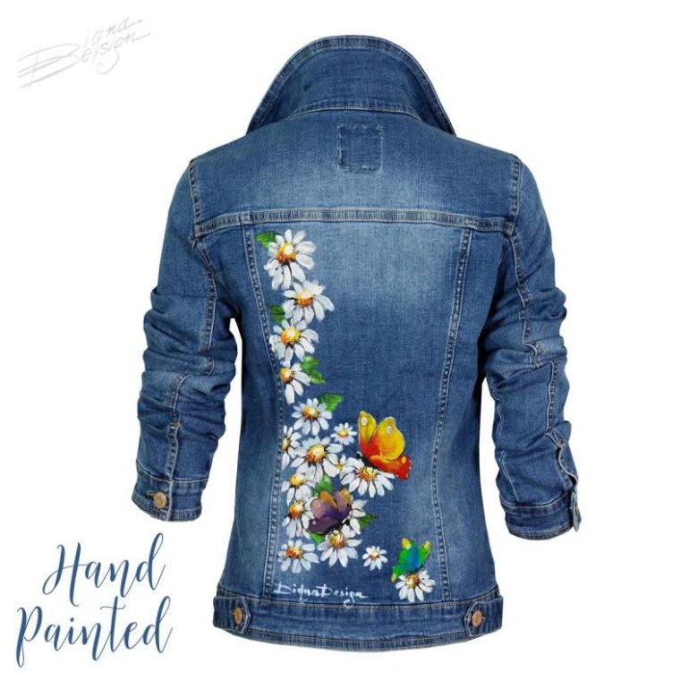 Джинсовая куртка с ромашками.