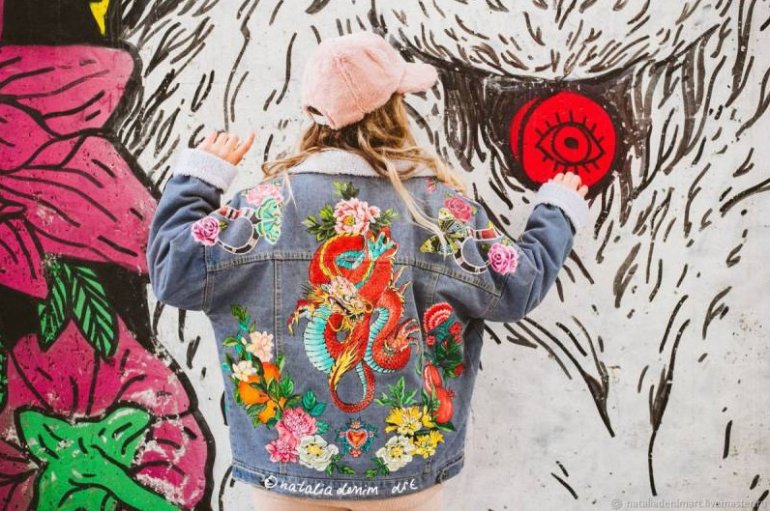 Джинсовые куртки с росписью на спине.