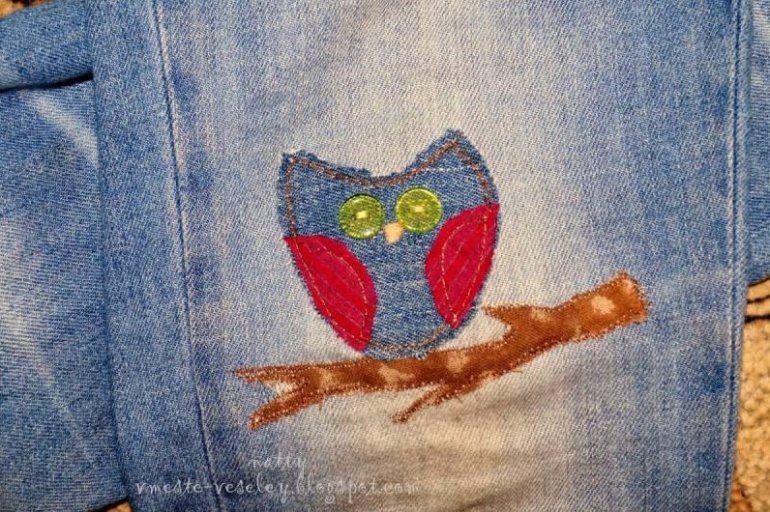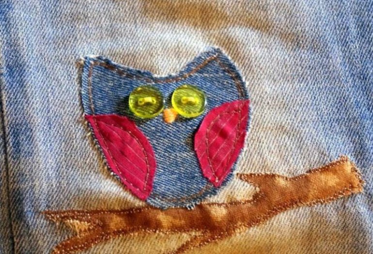 Аппликация из джинсовой ткани на одежду.