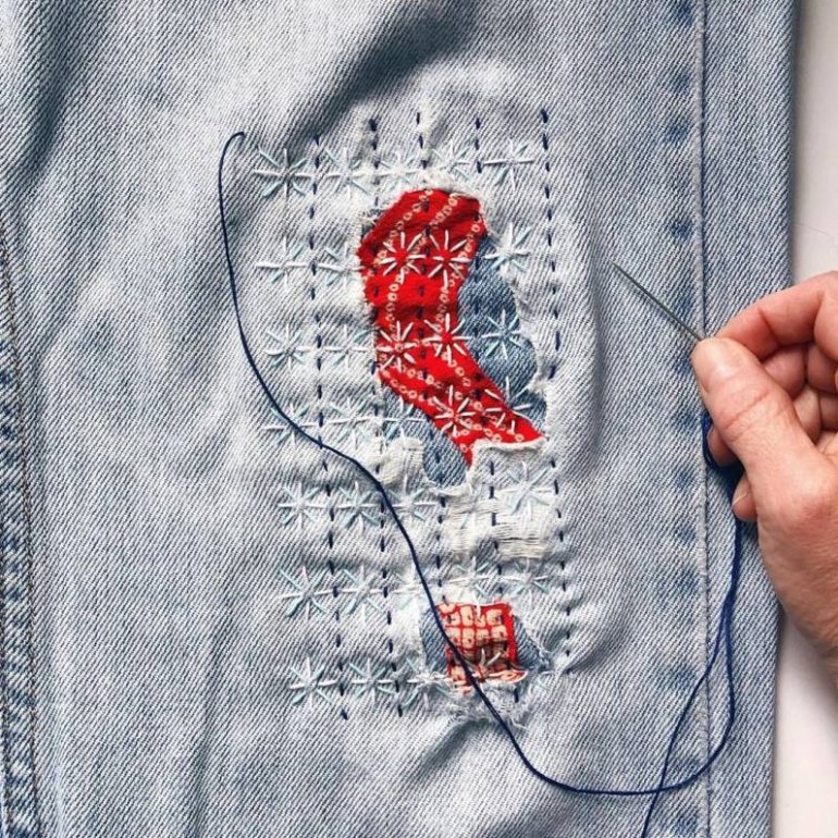 Японская Штопка Боро на джинсах.