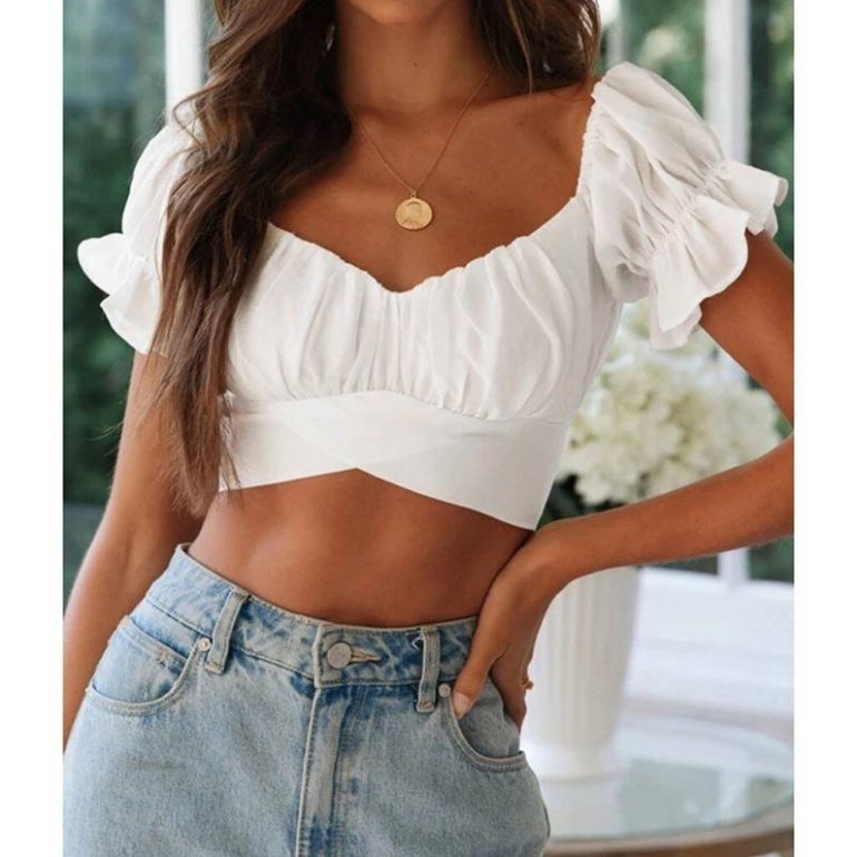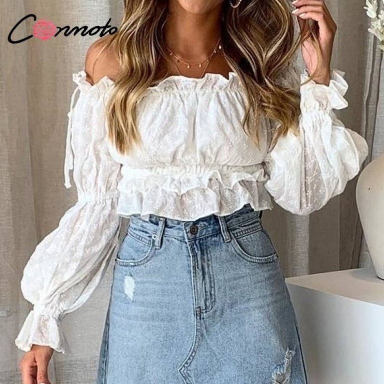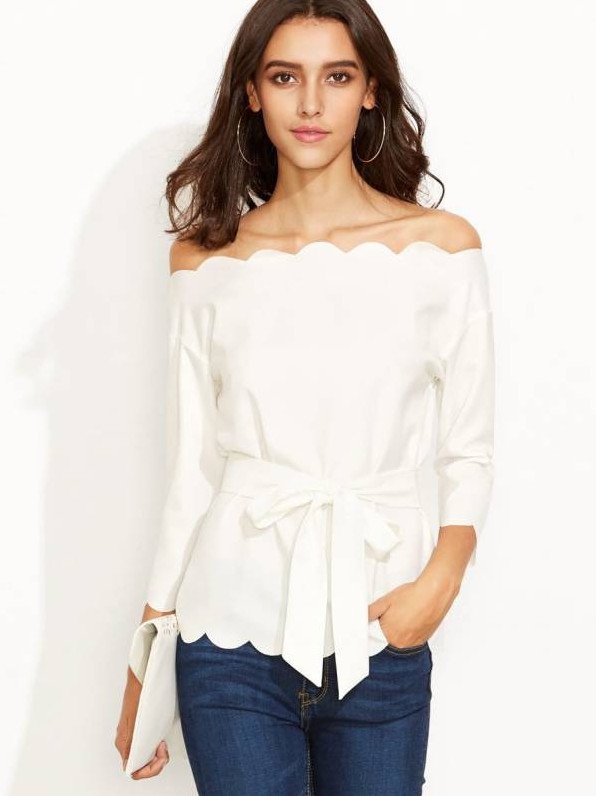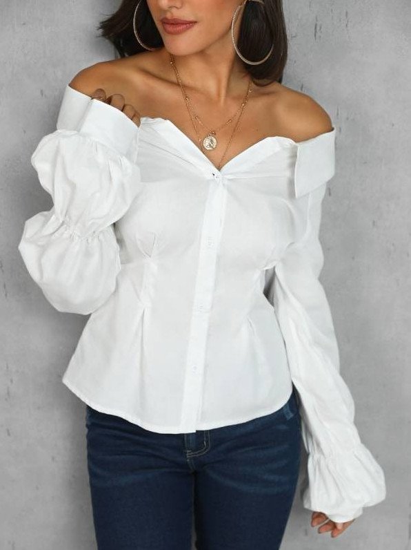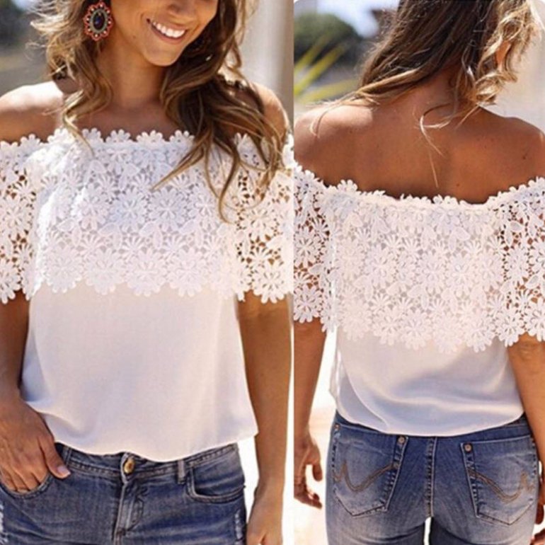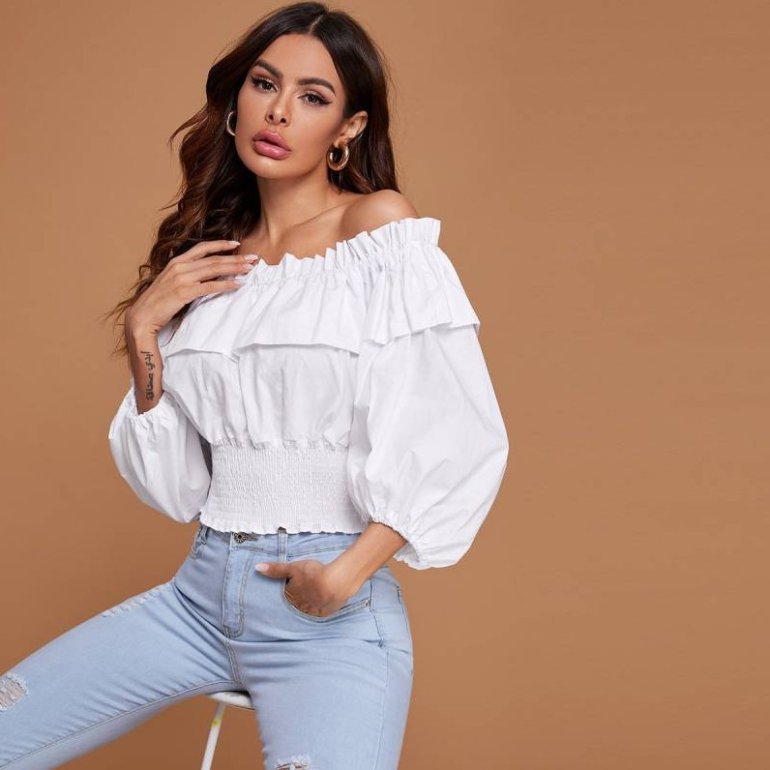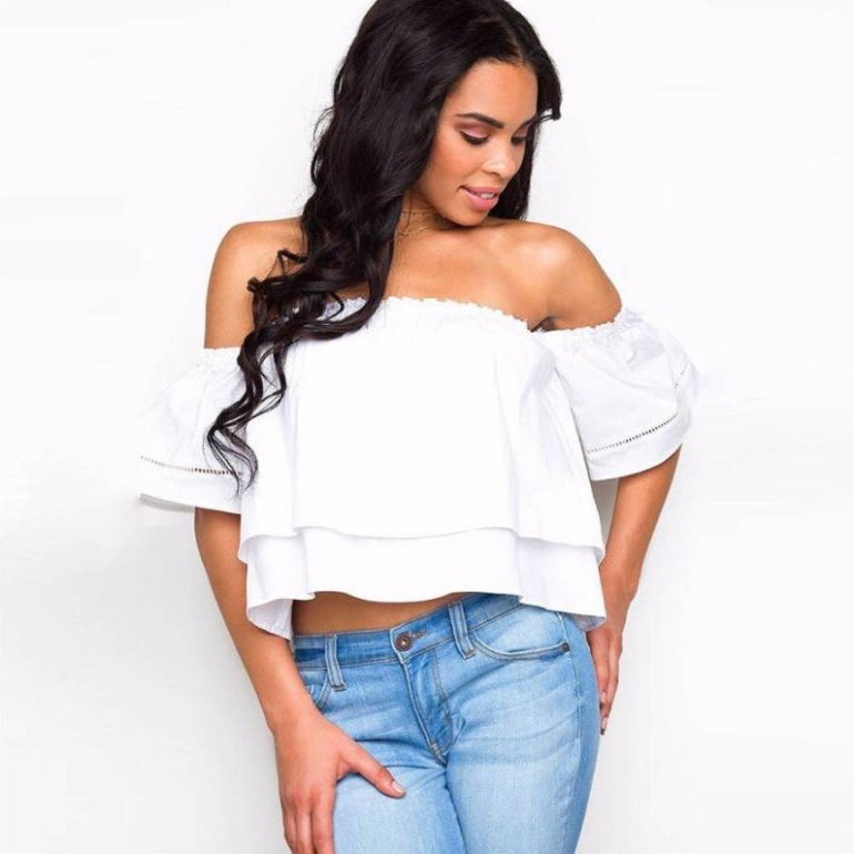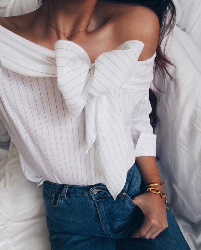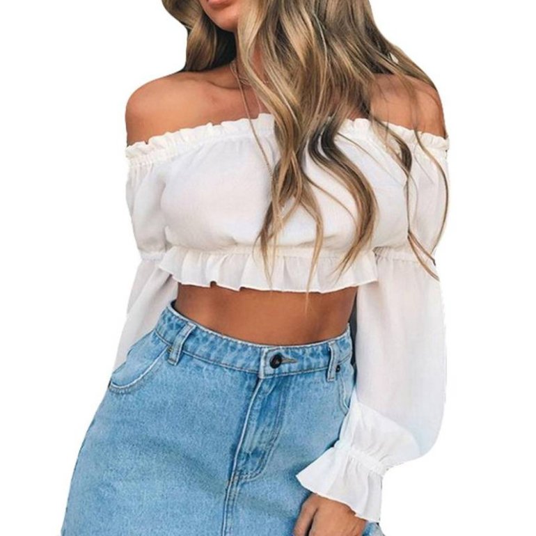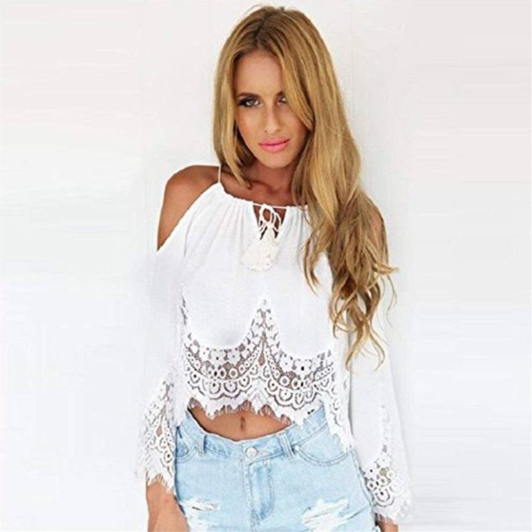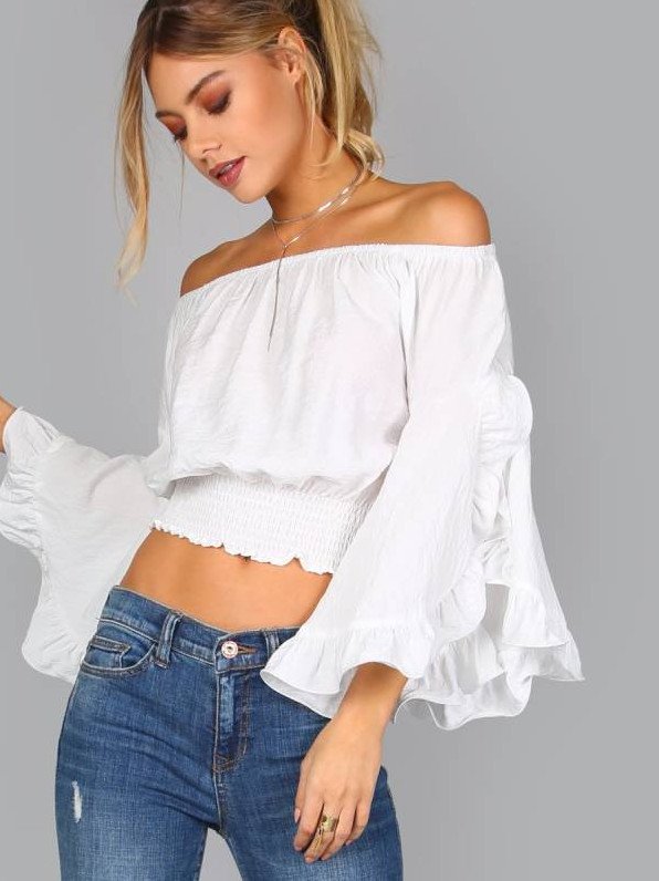 Кофта с открытыми плечами и длинноватыми рукавами.
