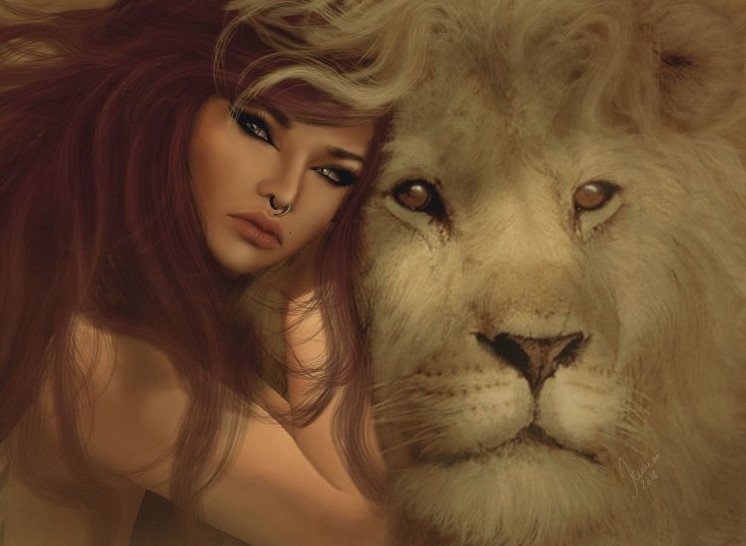 Красивая девушка и Лев фэнтези.