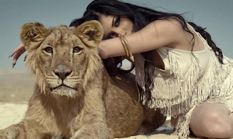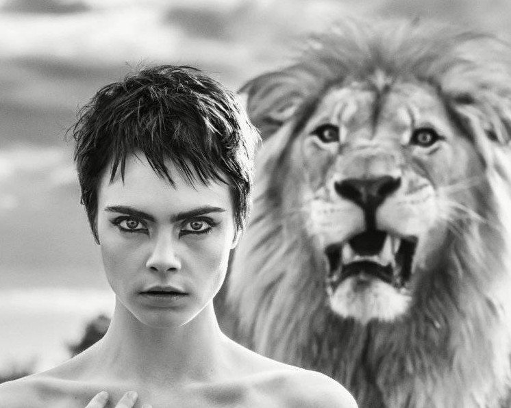 Обои Лев и модель.