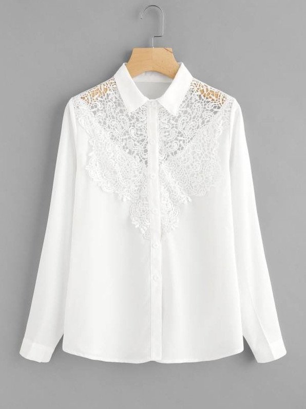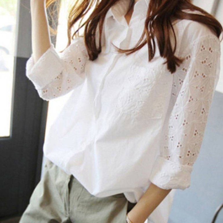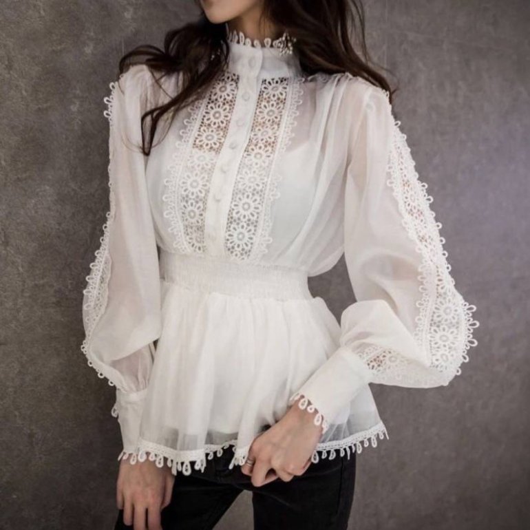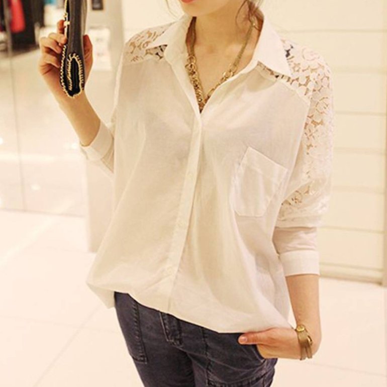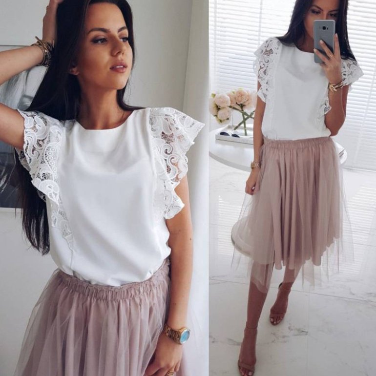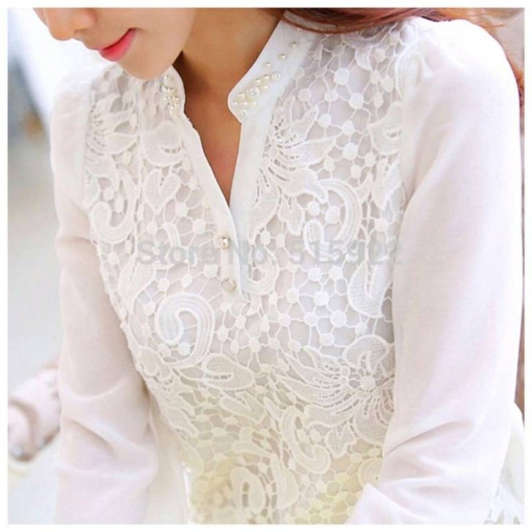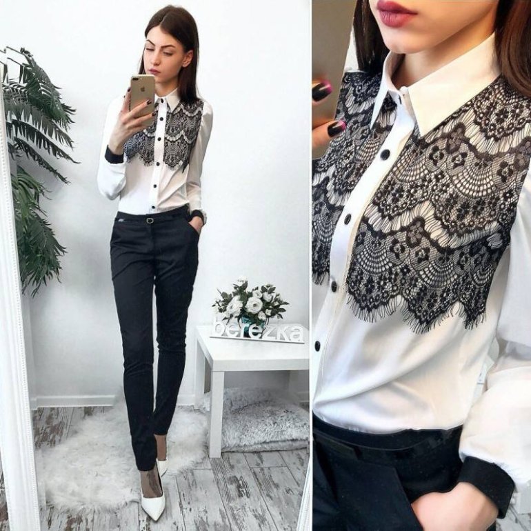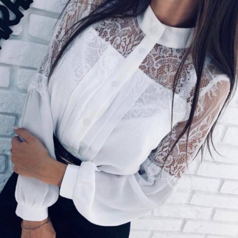 Белоснежная блузка с кружевом.