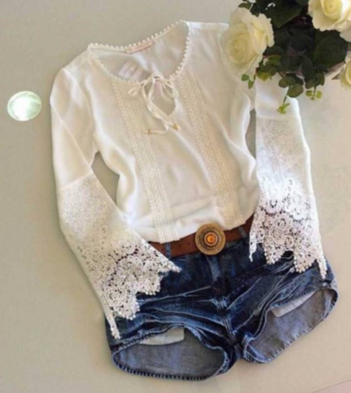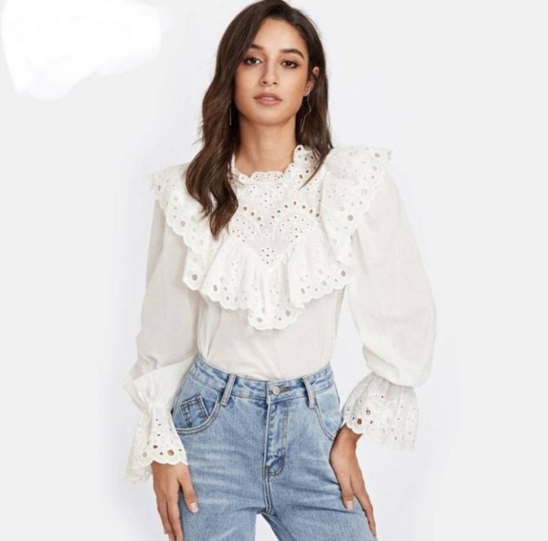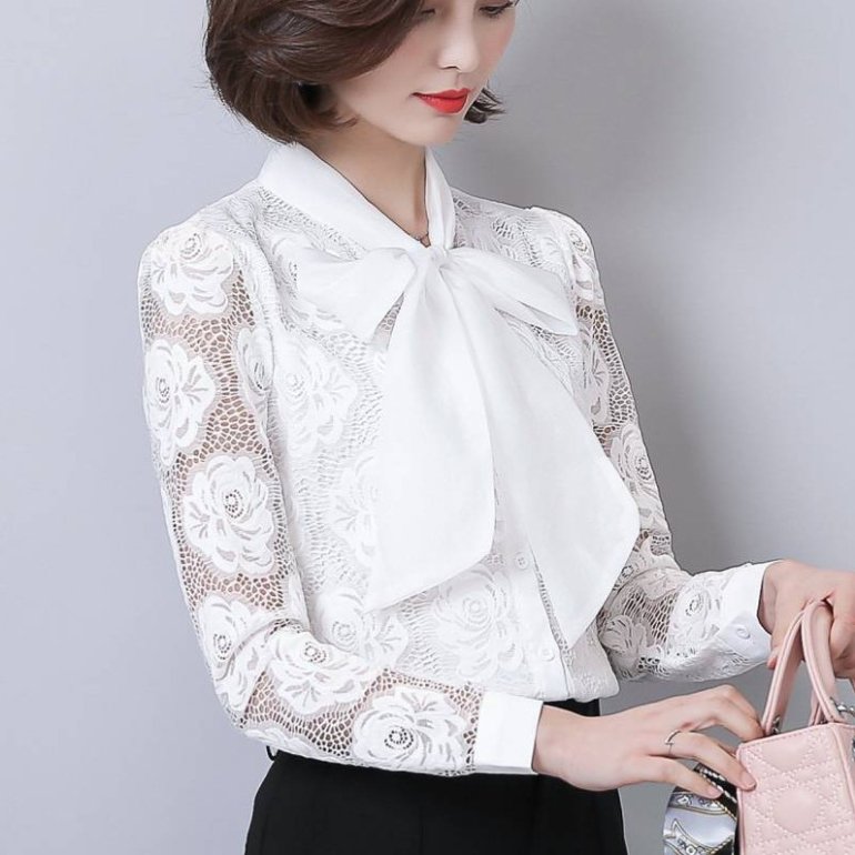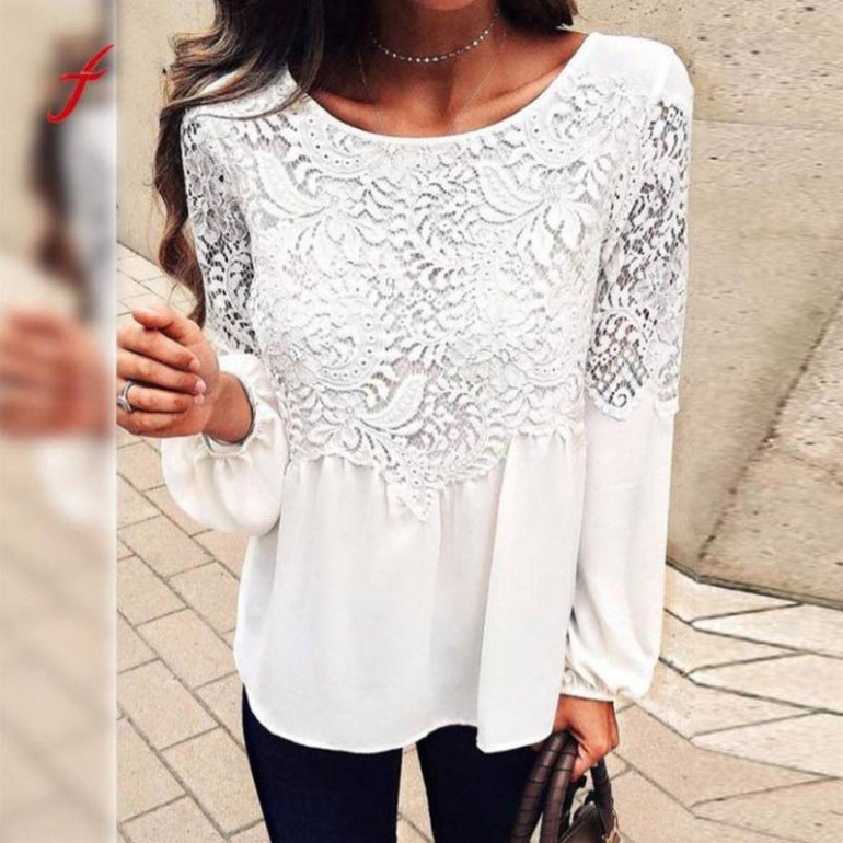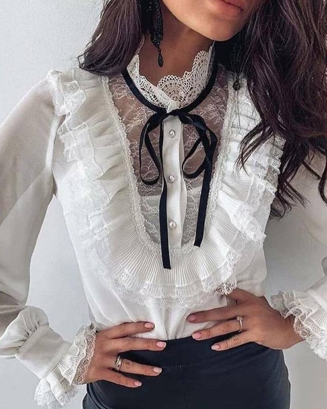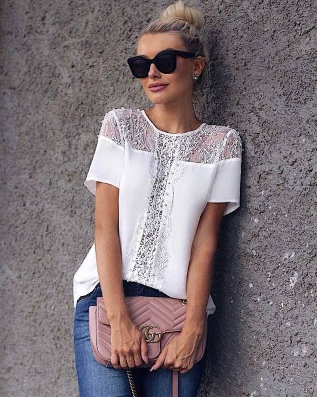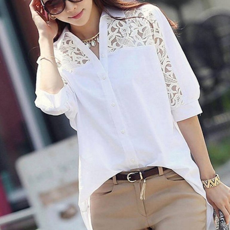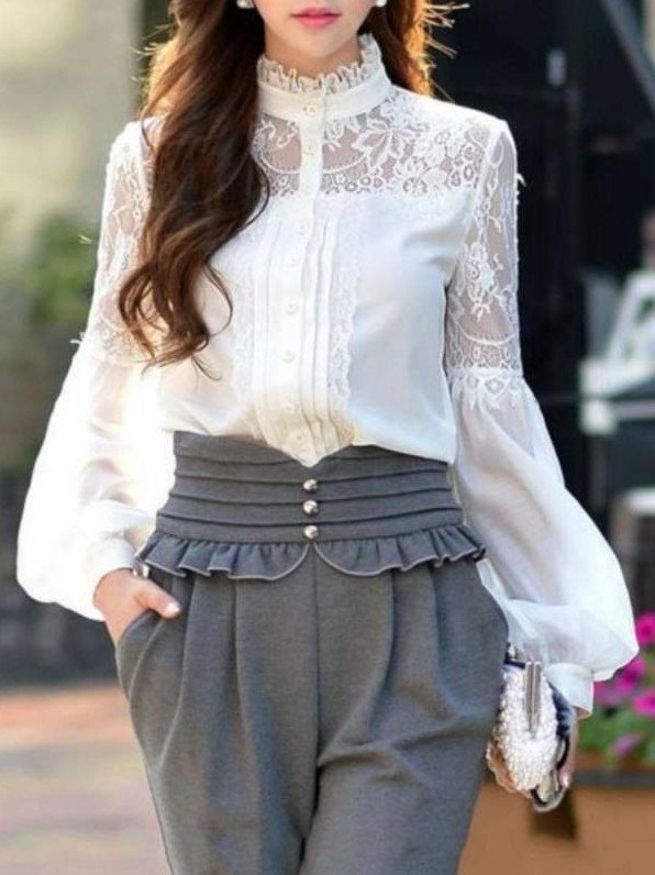 Белоснежная блузка с кружевом.