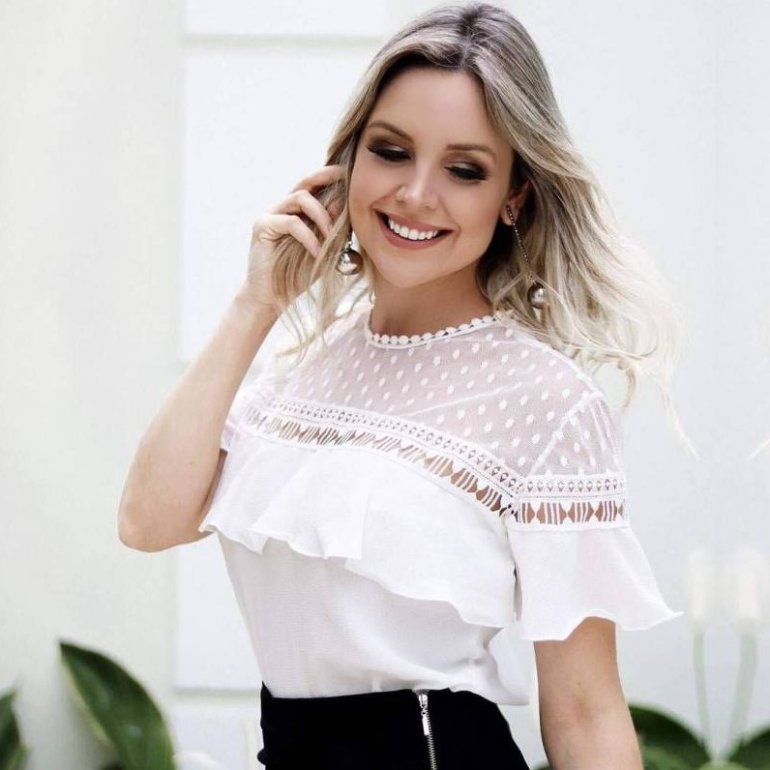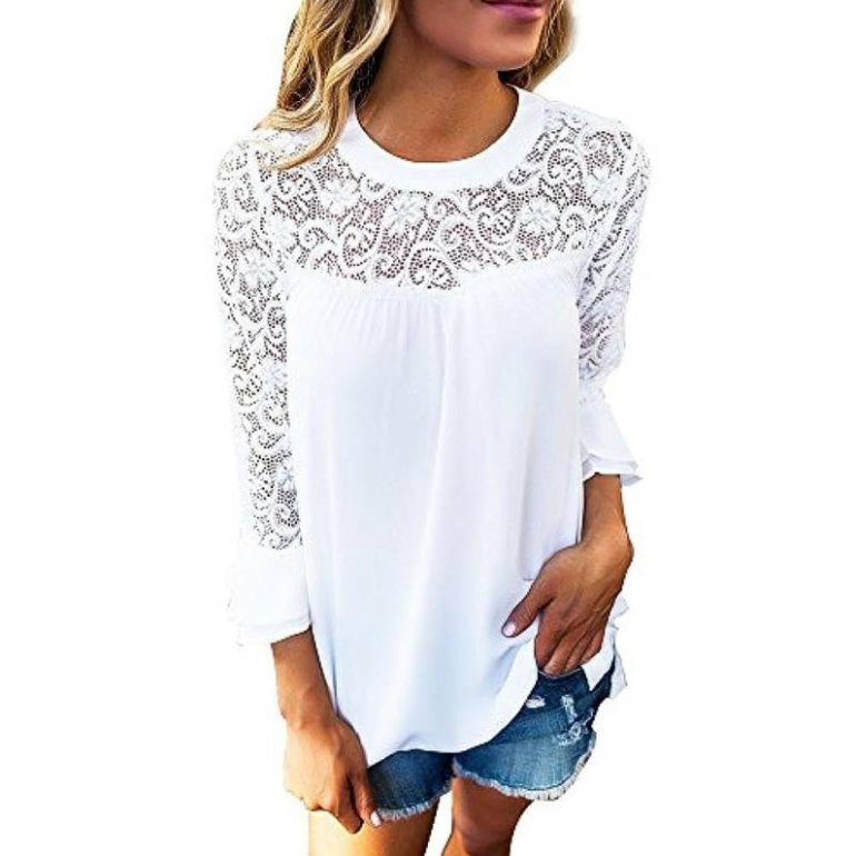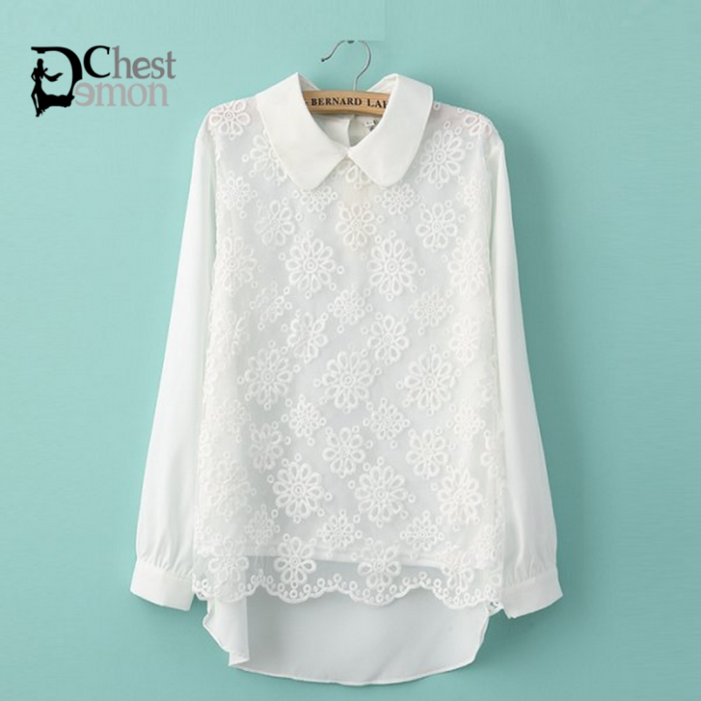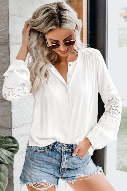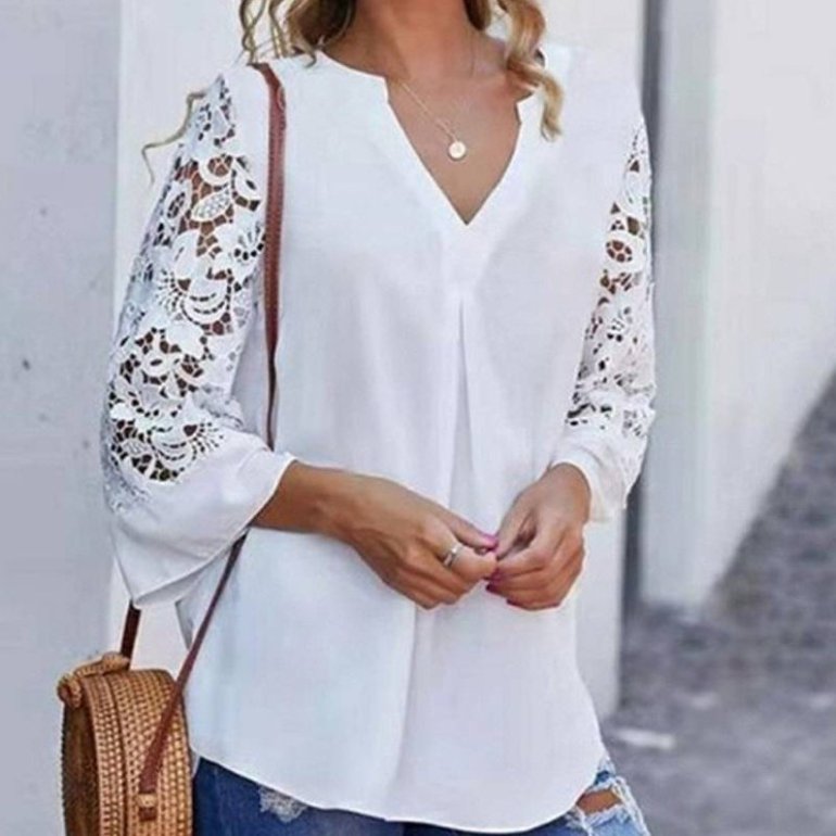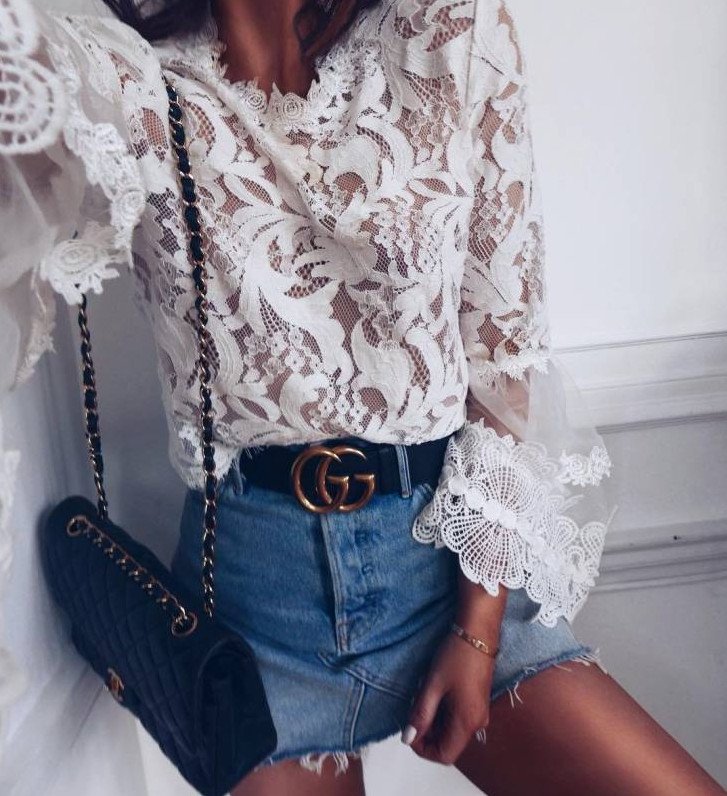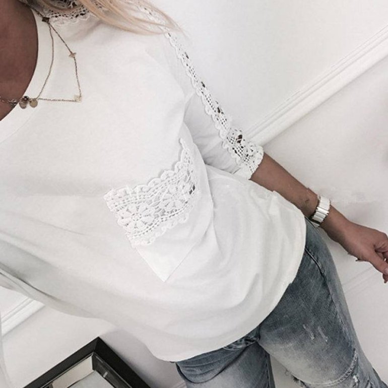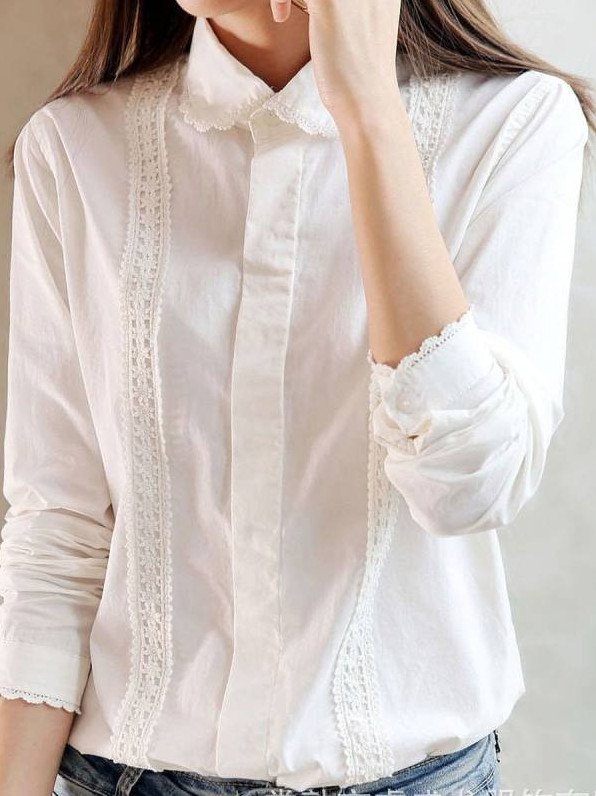 Белоснежная блузка с кружевом.