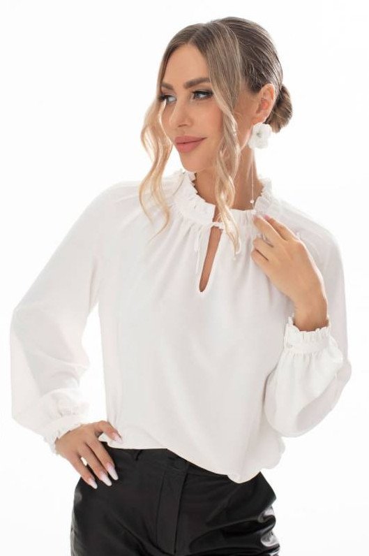 Белоснежная блузка с воланами.
