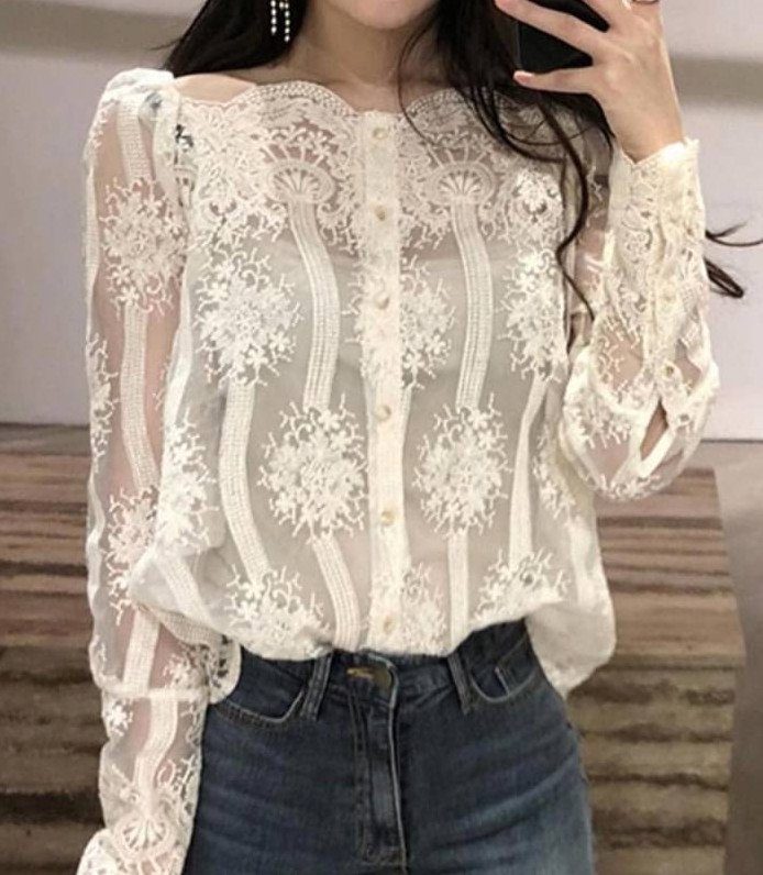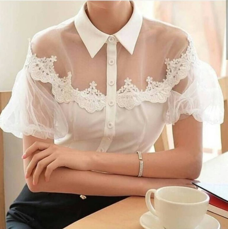 Белоснежная прозрачная блузка.