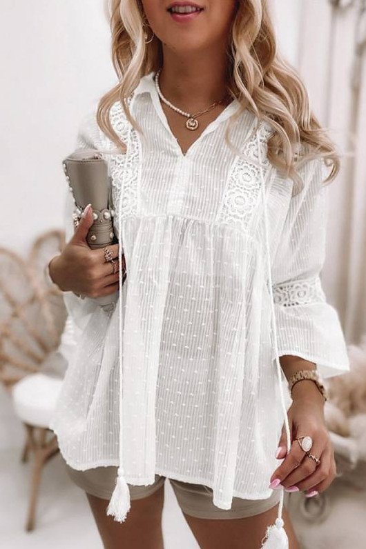 Белоснежная узорчатая блузка.