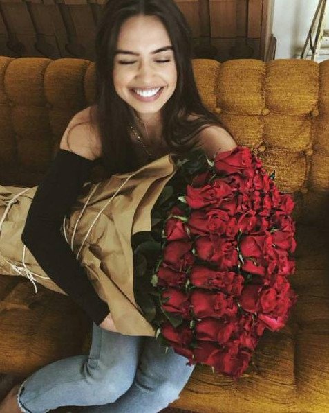 Девушка с букетом роз.
