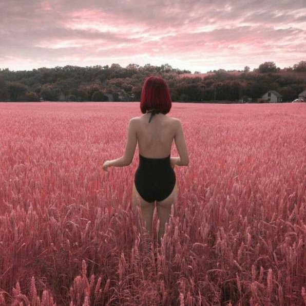 Красивая девушка в Красноватом прекрасное платье Эстетика.