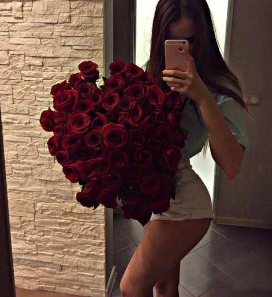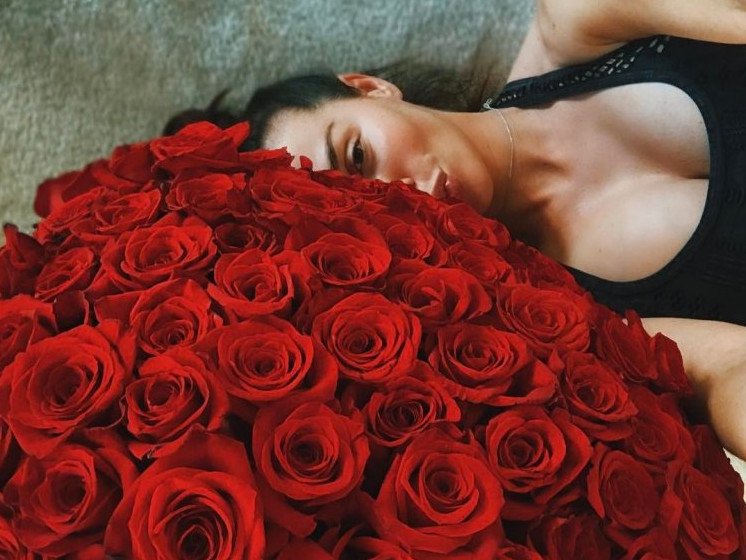 Эротика с брюнеткой с красными розами.
