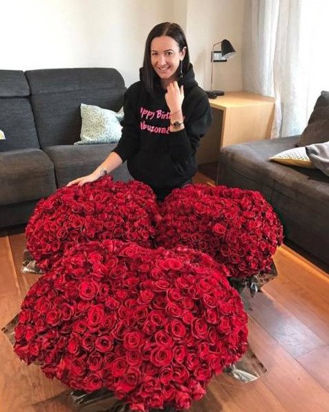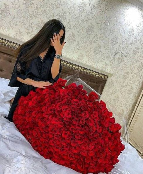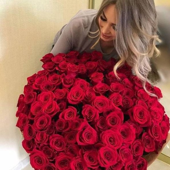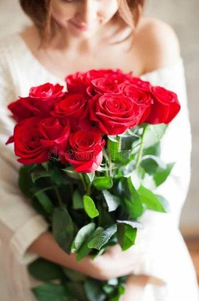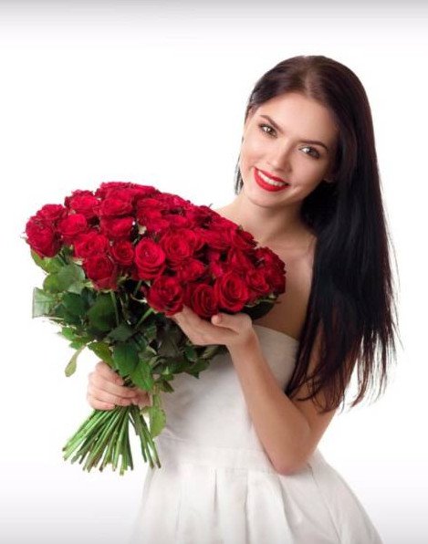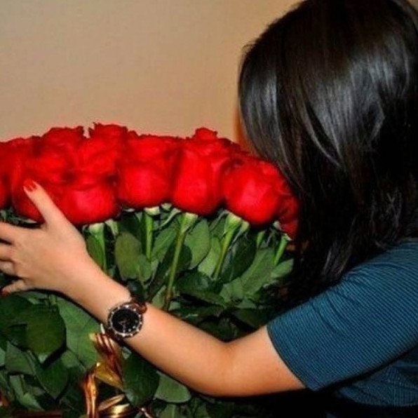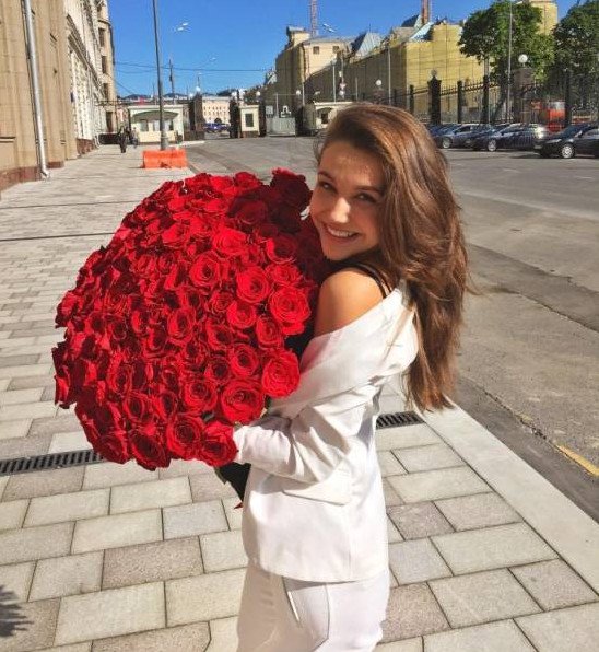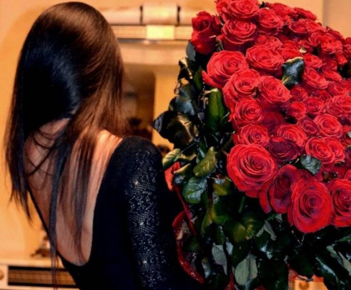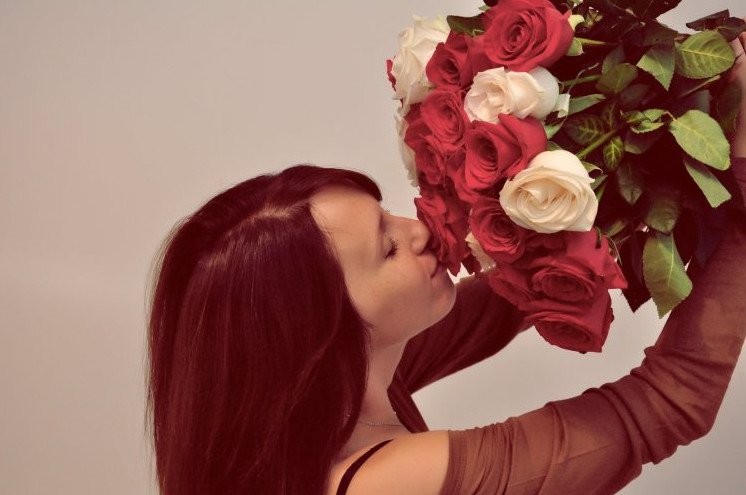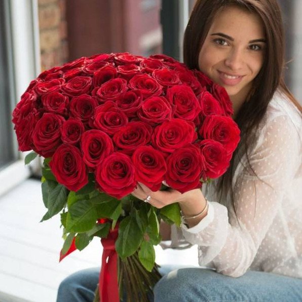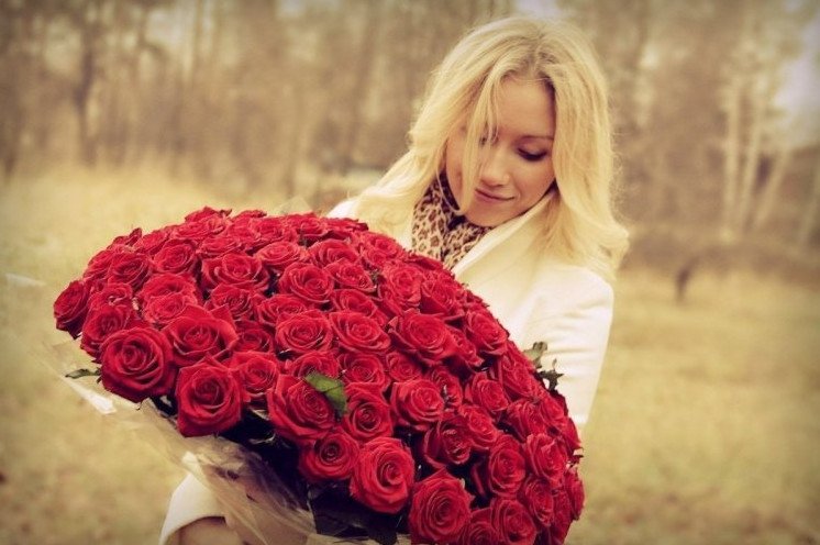 Девушка с букетом роз.