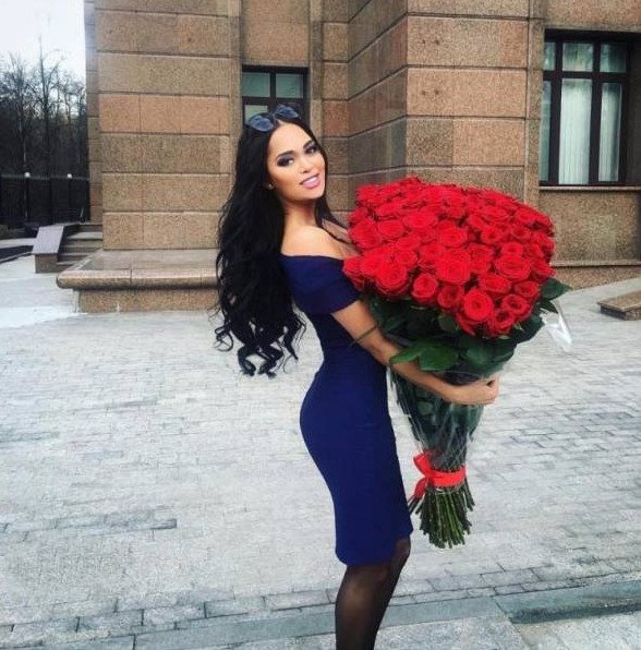 Эротика с брюнеткой с букетом цветов.