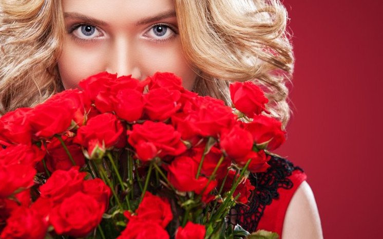 Девушка с красными розами.