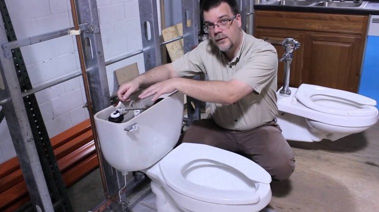 Сантехник в туалете.