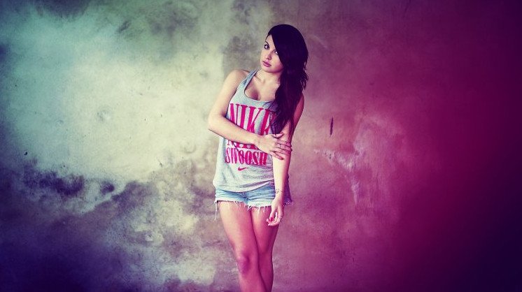 Девушка на однотонном фоне.