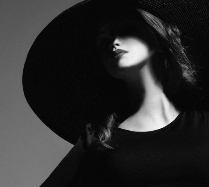 Прелестная красивая женщина в шапке фото черно белое без лица.