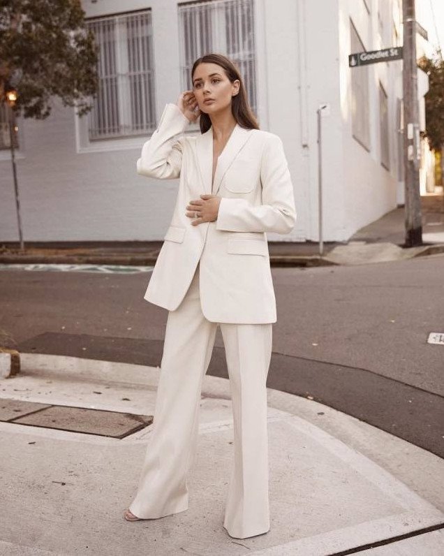 Белоснежный брючный костюмчик Victoria Beckham.