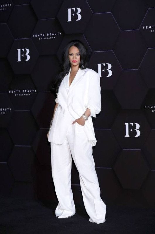 Рианна в белоснежном костюмчике.