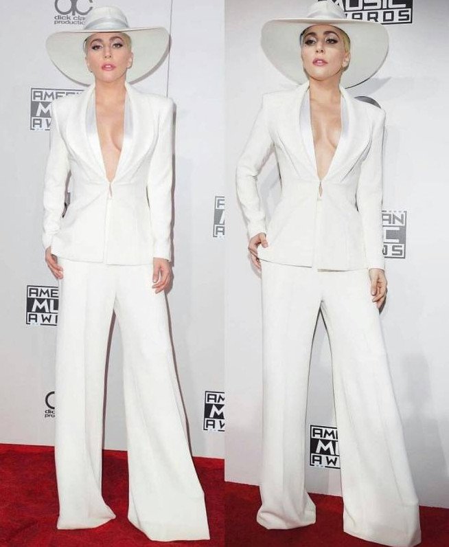 Леди Гага в брючном костюмчике.