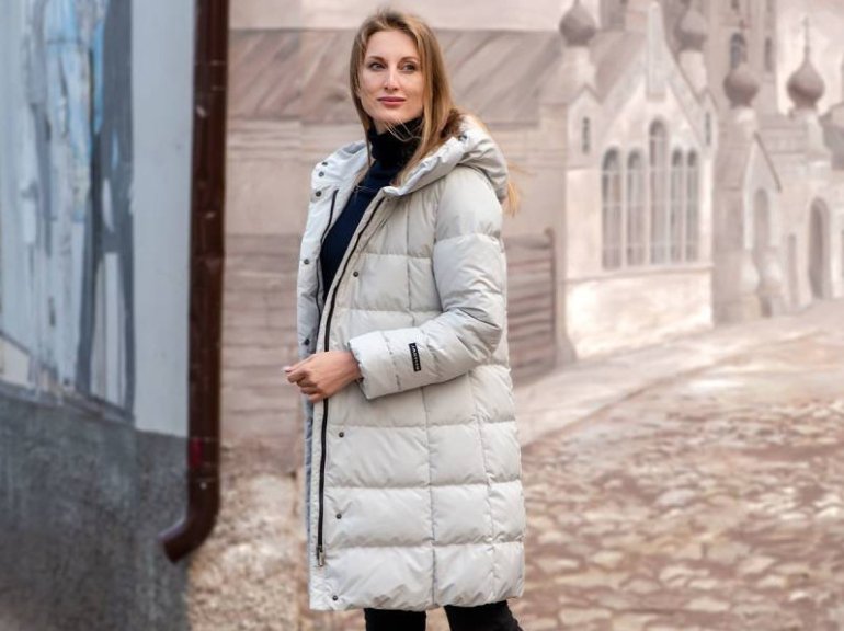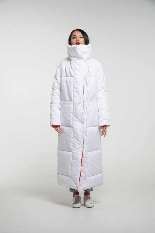 Пуховик на белоснежном фоне.