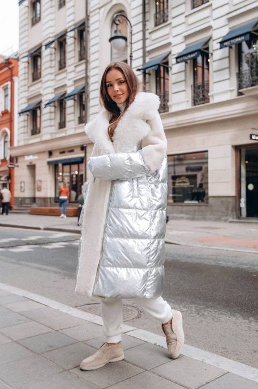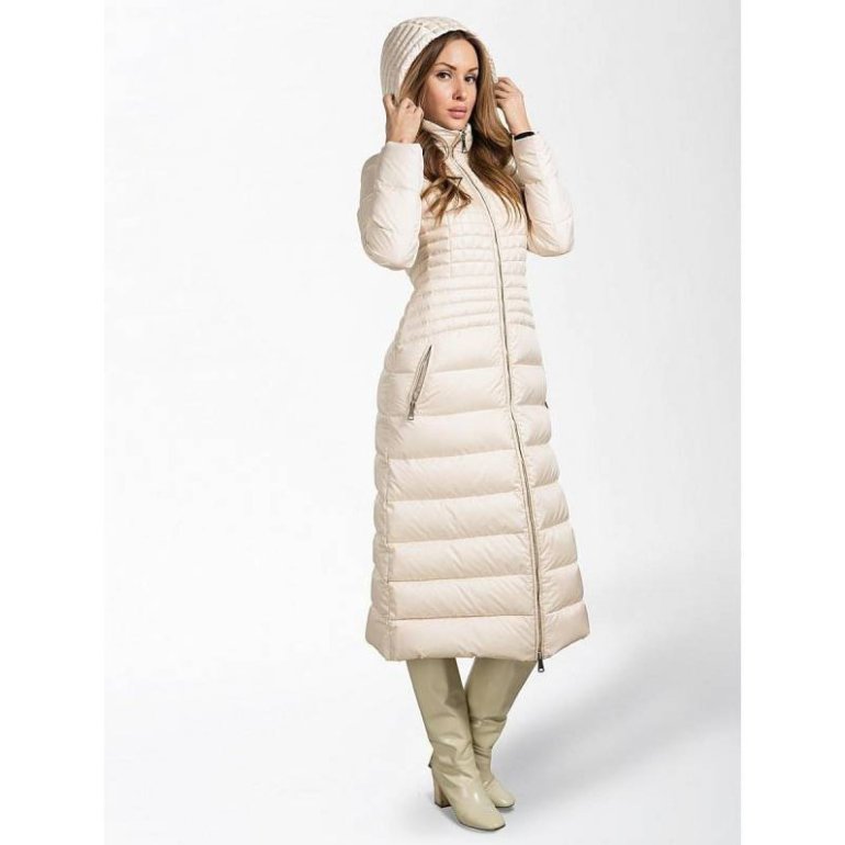 Монклер белоснежный пуховик длиннющий.