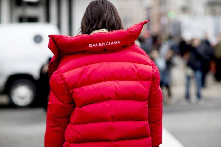 Пуховик Баленсиага женская очень красный.