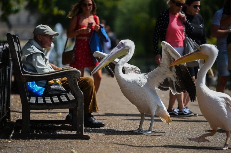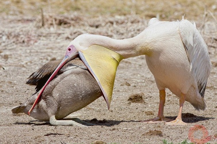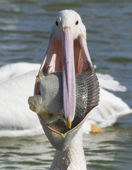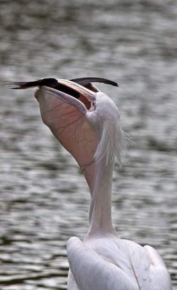 Пеликан проглотил голубя.