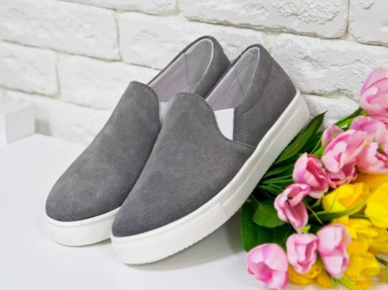 Слипоны из сероватой замши купить.