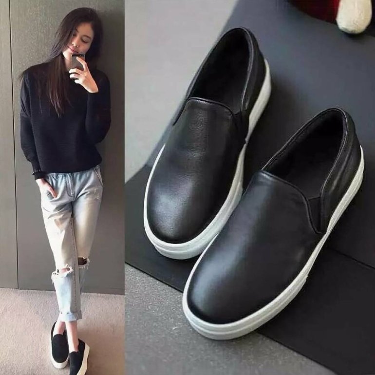 Мода слипоны дамские кожаные.